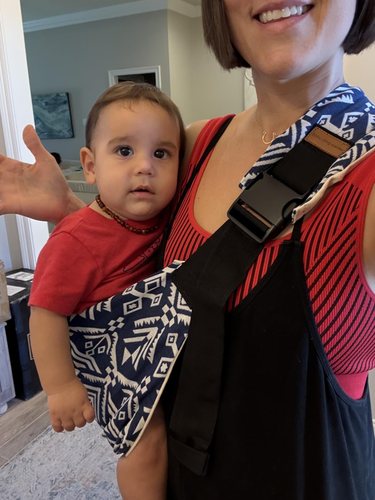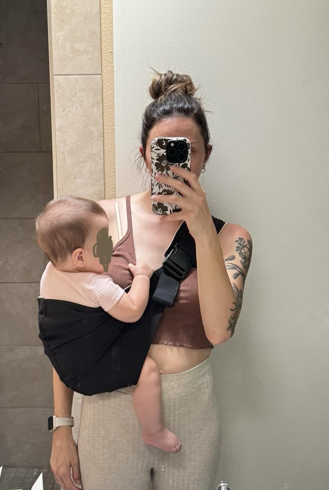 Most carriers use a waist belt. This one does not. Traditional wraps and carriers sit low on your body and press into your stomach. Ours keeps pressure off by lifting the baby higher on your body.